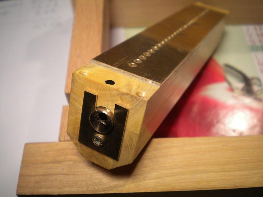 comme ça ! C'est beau quand c'est finit, mais c'est quand-même un peu "tricky" à réaliser comme disent nos voisins :o) La flûte est en deux parties et le boisseau interne est en laiton de 8 mm. Les vis d'assemblage ne servent que pendant la construction. Au final, après un serrage "juste ce qu'il faut", tout est collé à l'Araldite et on enlève les vis pour relacher les tensions. Comme le buis se déforme très peu ensuite, on obtient quelque chose de très stable dans le temps et au fonctionnent plutôt doux. Remarque : Au final, ce dispositif doit être parfaitement étanche et se comporter comme une flûte de pan normale ! Evidemment il ne faut pas de fuites entre voisins, mais pas non plus de micro-fuite permanente. Sinon les performances du système de soupapes s'en ressentent, avec des répétitions pointues à régler et des difficultés pour sortir les notes très courtes. J'en ai réalisé deux pour en avoir une bonne. Mais quand on est têtu hein...