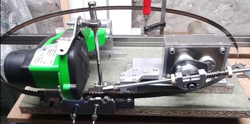 l'orgue de barbarie mène à tout. Après une e.serinette très réussie, Valdo a mis un orgue à anches en chantier. Et puis à force d'acheter des lames de scie à ruban, il s'est dit que ce ne serait pas une mauvaise idée que de les affûter. Alors, sans plan ni réel modèle, à force de fureter sur internet pour voir comment ça pouvait se faire, il s'est construit cette machine. Chapeau !