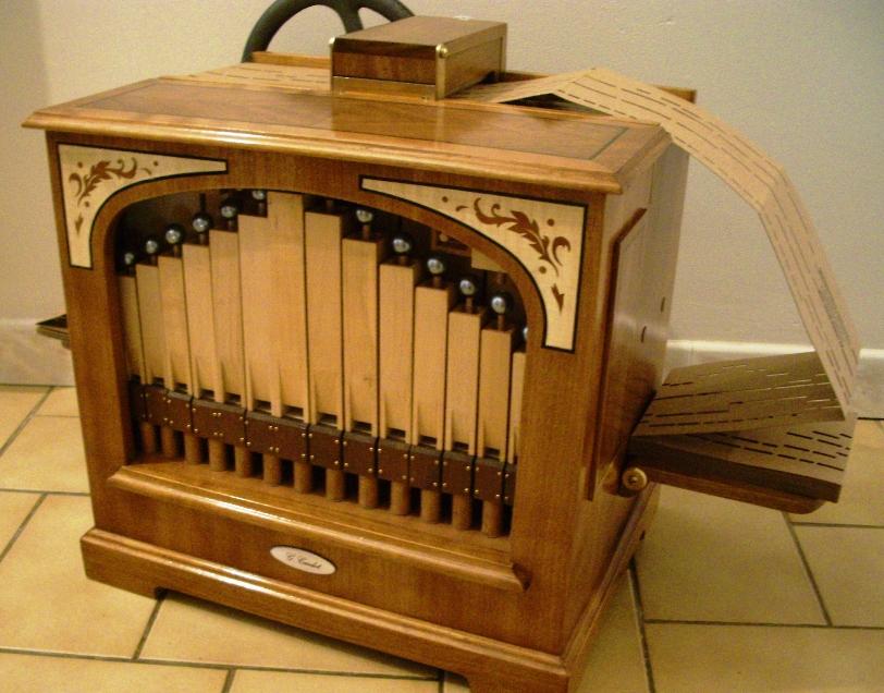 Cette page regroupe des liens vers vos réalisations, ou tout au moins celles dont vous m'avez fait part et que vous m'autorisez à montrer. N'hésitez pas à m'envoyer vos photos... Jacques : Il a construit un 29 à flûtes, mais il a également fait des essais comparatifs sur le son des tuyaux. Jean : Un 29 notes à flûtes... Plus que bien imité, et une plieuse de cartons. Georges : Le 29 est devenu un 38 notes (et lui seul sait pourquoi!). Particularité : Georges a commencé par fabriquer une perforatrice avant de se lancer dans la construction de l'orgue. ;o) Yves : Un instrument très personnel, avec des soupapes fonctionnant par gravité, et sans pilotes. Sa (ses...) perforatrice est plus que bien réalisée. Quant à son Mini29... Roberto : Si je vous dis qu'il est suédois, et que sa perfo est une petite merveille... Jean-Claude : Du beau, du très beau même! Daniel :