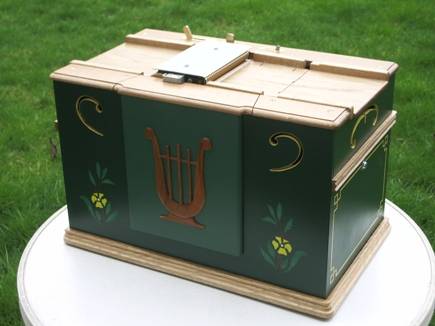 Le fil conducteur... Le précédent instrument me donne toute satisfaction. Il est fiable et ses qualités musicales semblent plaire. Mais il est tout de même assez lourd et encombrant. Et puis, il n'est bien que sur sa carriole, qui n'est pas bien légère non plus... L'idée est donc de concevoir un instrument compact, que l'on puisse emporter partout. Qui soit suffisamment léger pour se satisfaire d'une épaule comme unique moyen de transport et de mise à poste, mais qui soit tout de même assez performant musicalement. Un instrument à anches tournant de la musique sous forme de rouleaux semble tout indiqué, mais quel standard choisir? Il existe bien sûr le célèbre Seraphone et quelques uns de ses dérivés, mais pourquoi ne pas continuer sur le standard Erman? Après tout, quand on dispose d'une perforatrice automatique, il est facile de perforer autre chose que du carton. Reste le problème de la musique et de la qualité parfois très moyenne des arrangements personnels (je parle pour moi là hein ;o)) au regard de ceux de nos illustres noteurs. Et si l'instruments pouvait aussi passer des cartons? Donc pour résumer: Standard 27-29, à anches, tout petit, qui passe de la musique en rouleaux et des cartons (pas l'inverse). Et puis... Pas de tuyaux qui se baladent partout à l'intérieur, j'aime pô ça.