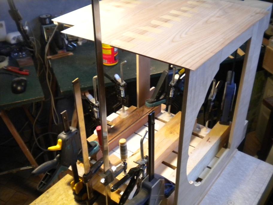 plein de serre-joints (y'en a jamais assez !) et pose des chants arrondis
