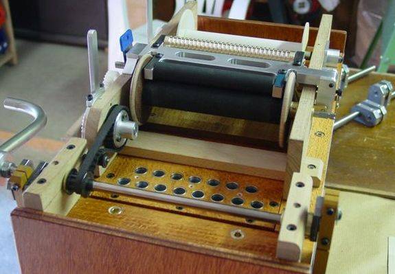 La qualité de réalisation me laisse béat d'admiration ! Tout y est, même les ouies et le motif en lyre. La mécanique Une courroie crantée : tout léger et fonctionnement tout doux. Bobine
