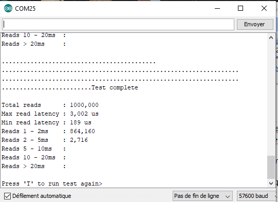 - La lettre r (R) donne les résultats du test en cours à tout moment pendant son