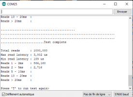 Séquence d'initialisation et résultats de tests sur une carte