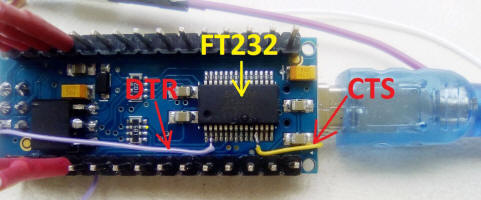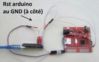 . Et enfin le DTR de l'arduino (fil violet) sur la dernière broche