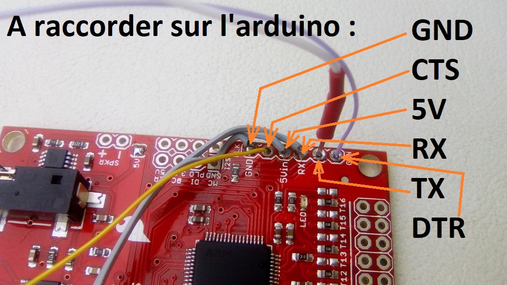 . CTS de l'arduino (le fil jaune ici) sur la borne suivante de la WT