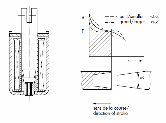 Exemple de courbe de force (catalogue Kuhnke) Pour simplifier la démarche, on va se contenter de vérifier les performances d'une bobine donnée. Cas d'étude Et cette force ? Théoriquement, cette bobine est trop courte pour être