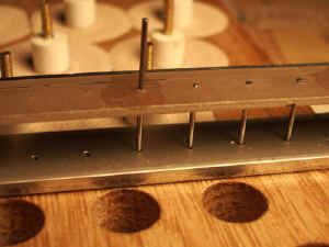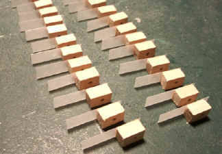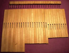 C'est bien parti! Les vergettes Elles mesurent 7.5 mm de large (pas de 8.4, moins le clou de 0.9) et sont tirées d'une seule planche de 4 mm d'épaisseur. Trois longueurs différentes sont nécessaires.