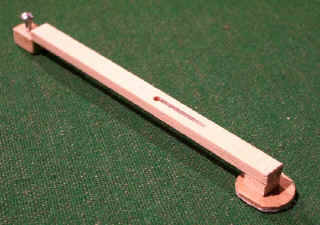 L'articulation Le support est tiré d'une planchette de 5 mm. Le charnière proprement dite provient d'un cliché radiographique. Le plastique est dépolit au papier de verre, puis collé à l'aide d'une colle polymère (Sader). Pourquoi ce type de charnière? Sur le prototype d'instrument à 2 notes, le cuir s'est avéré trop mou, de même que différents tissus. Le choix de la colle? L'Araldite tient moins bien à l'arrachement, et une Cyanolycrate rend le plastique cassant. Avec la colle polymère, il semblerait qu'on ait les avantages de ces deux-là, sans les inconvénients.