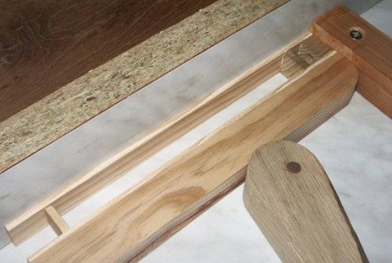 de carton. Késako? Le bouchon en trois temps : Si le bouchon doit être tiré d'un tasseau, on fait pareil pour mettre le tasseau à la cote. Pour l'avant et l'arrière, même méthode pour régler le guide de la scie: