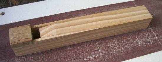 Finition du résonnateur : Mise à la longueur, en se donnant un peu de marge. Puis on passe un léger coup de dégau (ou ponçage) sur les 4 faces.