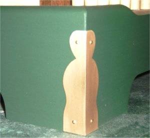 Déco à l'aide de pochoirs, suivie d'une légère patine et d'un vernis satiné. La rose des vents est une marqueterie d'orme et de merisier en planchettes de 3 mm. La manivelle est tirée d'une barre de laiton de 15x10 formée au chalumeau, et soudée sur un canon du même métal. Toutes les parties en laiton sont soigneusement poncées et vernies. Toutes les parties internes on reçu une couche de lasure incolore. Les tuyaux sont protégés (de l'humidité notamment) par 2 fines couches de vernis incolore satiné.