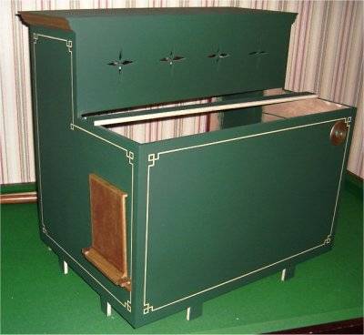 Une coiffe est réalisée en contre-plaqué de 10 mm assemblé par collage et pointage. Les tablettes débitrices et réceptrices des cartons sont solidaires de cet habillage. Les ouies en forme d'étoile côté guide cartons ont 2 rôles :