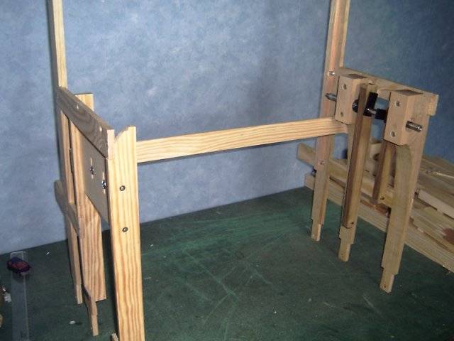 Il assure le support du vilebrequin, des tuyaux ainsi que du guide cartons et du ressort de la soufflerie. La partie support de vilebrequin est en chêne, alors que les autres parties sont en pin. Tous les assemblages sont à mi-bois et simplement vissés facilitant un démontage éventuel. La précision de ces assemblages détermine la rigidité de l'ensemble.