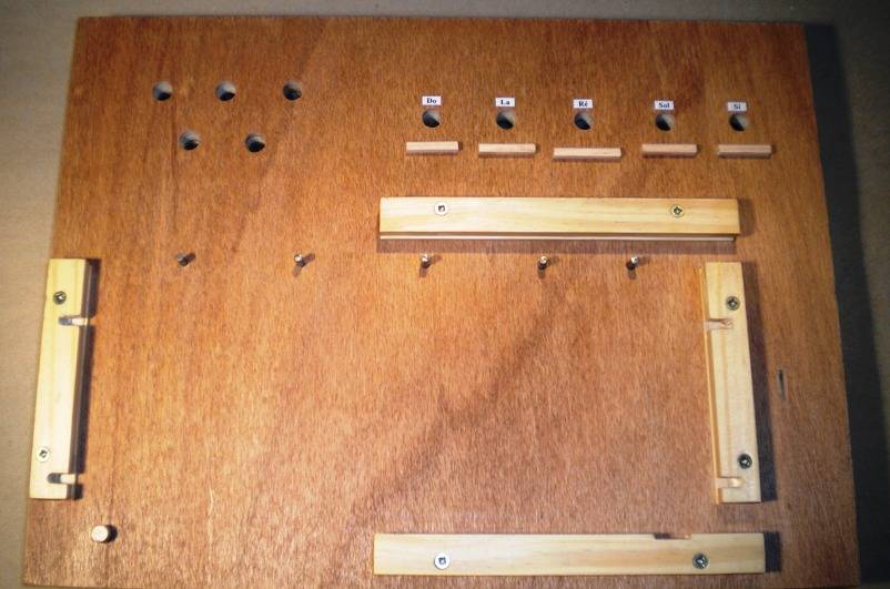 Si comme moi, vous aimez bien expliquer le fonctionnement de vos instruments, vous avez dû parfois éprouver le besoin d'avoir entre les mains quelque chose qui soit très simple, facilement démontable, et où tout est visible et accessible. C'est précisément le but de cette maquette. A vrai dire, ce n'est pas un instrument qui produira de la grande musique, mais au moins on devrait comprendre aisément comment il fonctionne, quel rôle jouent les différents organes, et de quelle manière ils sont mis en relation. Le principe : - Un véritable instrument à lecture pneumatique, complet et sans simplification aucune.- Un nombre réduit de notes. Tout plein de tuyaux c'est long à mettre en place et c'est sans grand intérêt pédagogique. Ca en met tout juste plein la vue du béotien qui s'y perd, et ne voit guère plus que cela. - Faire en sorte que montage et démontage puissent s'effectuer rapidement et sans outils. Le montage en vidéo : ici Les 5 sous-ensembles :