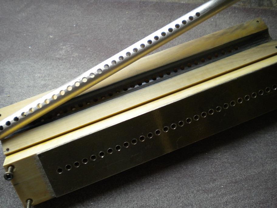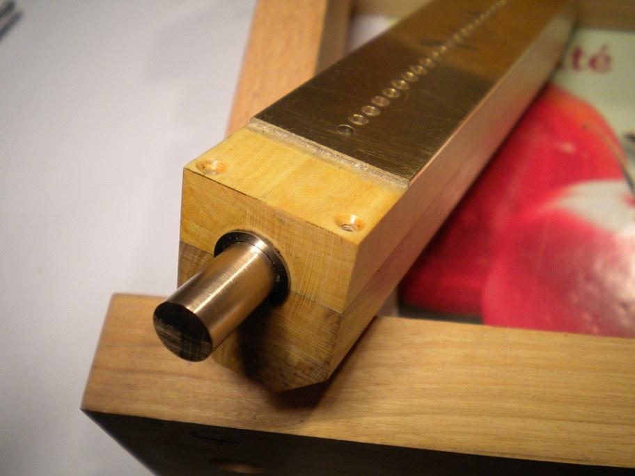 comme ça ! C'est beau quand c'est finit, mais c'est quand-même un peu "tricky" à réaliser comme disent nos voisins :o) La flûte est en deux parties et le boisseau interne est en laiton de 8 mm. Les vis d'assemblage ne servent que pendant la construction. Au final, après un serrage "juste ce qu'il faut", tout est collé à l'Araldite et on enlève les vis pour relacher les tensions. Comme le buis se déforme très peu ensuite, on obtient quelque chose de très stable dans le temps et au fonctionnent plutôt doux. Remarque : Au final, ce dispositif doit être parfaitement étanche et se comporter comme une flûte de pan normale ! Evidemment il ne faut pas de fuites entre voisins, mais pas non plus de micro-fuite permanente. Sinon les performances du système de soupapes s'en ressentent, avec des répétitions pointues à régler et des difficultés pour sortir les notes très courtes. J'en ai réalisé deux pour en avoir une bonne. Mais quand on est têtu hein...