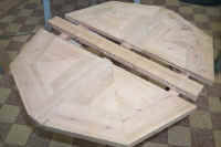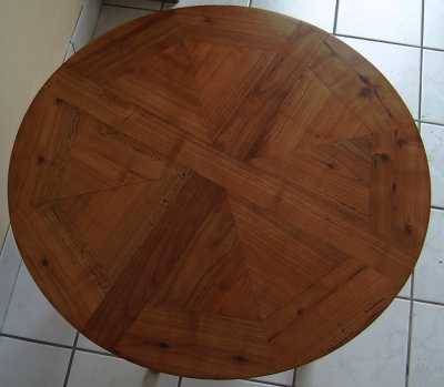 Toujours en rapport avec le bois, mais tout autre chose... Tables de salon Une table de salon ronde... avec du cerisier de récupération, un peu attaqué par les vers et grossièrement débité à la tronçonneuse. Télécharger le pdf (527 Ko)