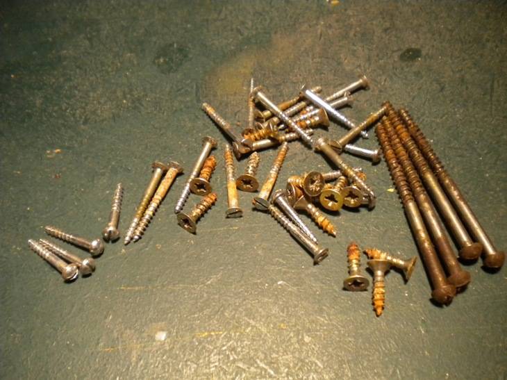 6. La visserie. Des vis cruciformes trop grosses qui ont laissé de vilaines empreintes, des vis galva à tête fraisée d'une seule dimension, trop longues pour la plupart et qui on transpercé des choses qu'elles n'auraient pas dû. En vrai c'est zéro galva, du laiton quand ça ne doit pas rouiller, un max de têtes rondes, et pas de cruciformes bien sûr.