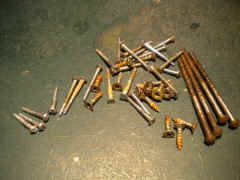5. Les ressorts. Ils avaient été refaits en câble d'acier (bon, pourquoi pas), mais hélas ils ont été soudés sur les têtes de vis. Réglage et démontage impossible. A refaire tout ça.