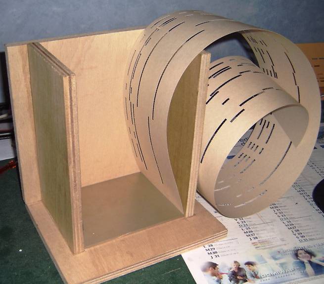 Dans le principe rien de plus simple : un pli dessus, un pli dessous tous les 160 mm. Mais c'est bien plus difficile qu'il y parait, et on a vite fait de fabriquer des "tours de Pise" comme le dit Christian. J'ai essayé deux méthodes: l'une rapide basée sur une "machine à entailler", l'autre manuelle, lente et beaucoup plus fastidieuse. Pour l'instant, c'est cette seconde méthode qui donne les meilleurs résultats.