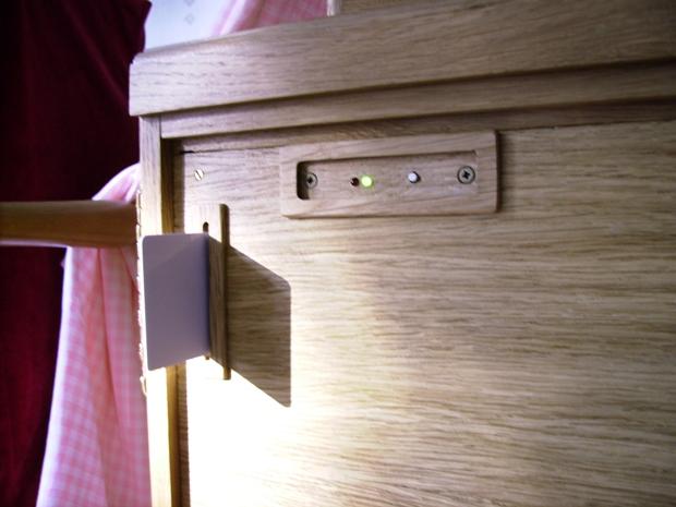 Un carton électronique quasi-identique au mien. Remarquer les trous oblongs de la contre-flute de pan, obtenus par un perçage en biais. Excellente idée car cela rend le système plus tolérant aux erreurs de positionnement. Un second ensemble intégré dans un orgue à anches. Capotage du capteur de vitesse pour le rendre insensible à la lumière. Rhooo le joli câblage !