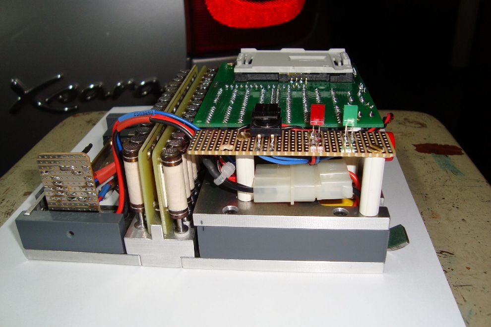 Un carton électronique à base de relais du commerce. En état "premiers tests", mais ça fonctionne déjà parfaitement.