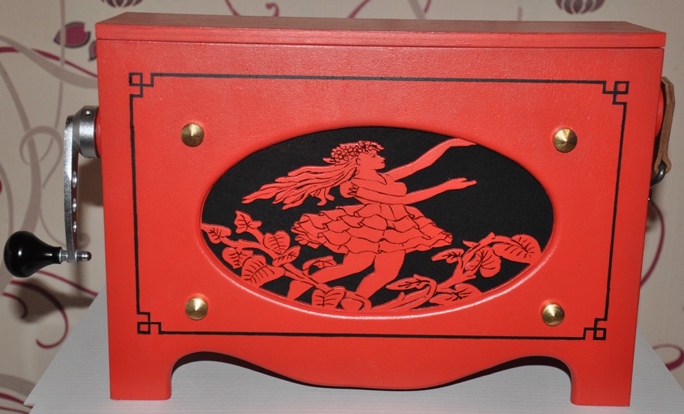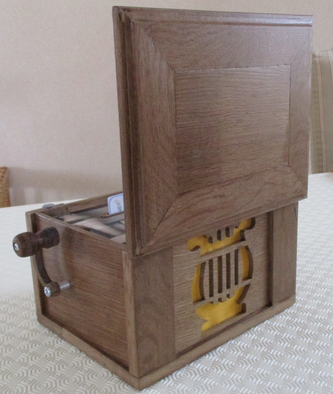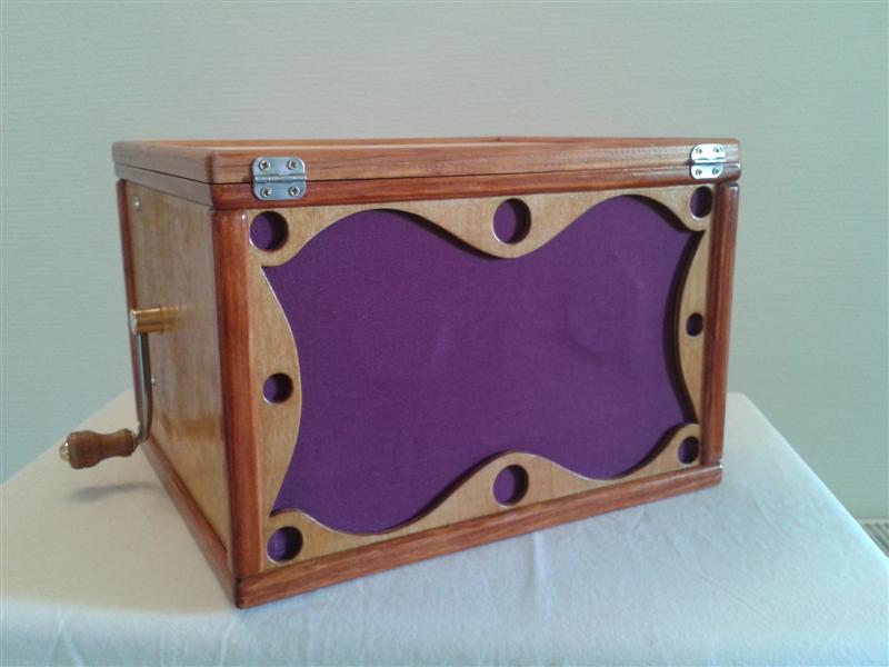Un superbe coffret remarquablement bien finit. Dimensions : 38 x 20 x h25 cm. On dirait un instrument de pro. Félicitations !