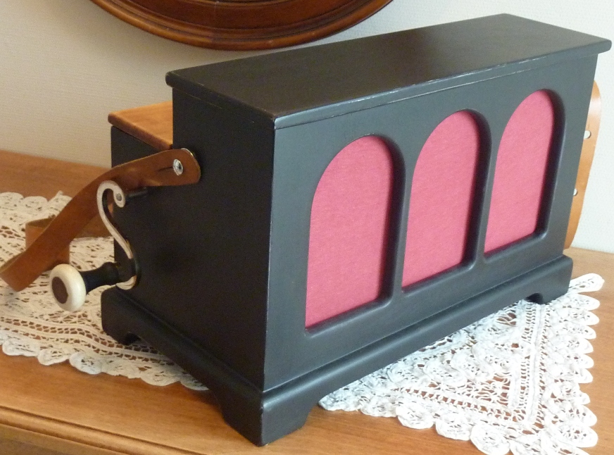 aux dimensions exactes d'une vraie serinette, et construit avec du bois