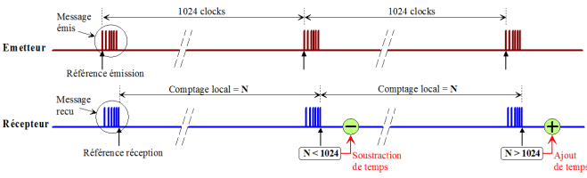 | Toutes les 1024 occurrences de son horloge, l'émetteur envoie un message