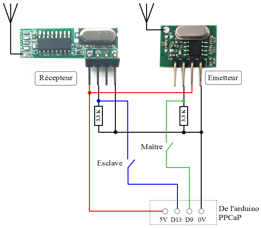 - Relier la connexion émetteur à D9 et la connexion récepteur à D13.