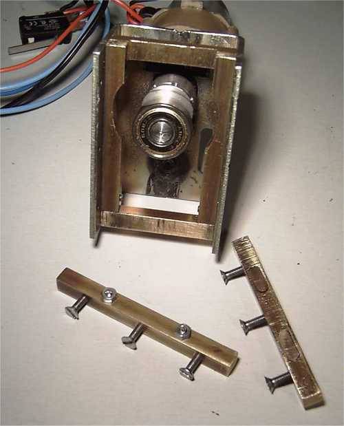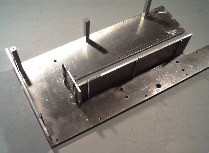 Quand la tête est terminé et que l'on est bien sûr que ça marche comme on veut, on démonte toute la partie coffre, on dégraisse au trichlo, et on remonte en mettant de l'époxy sur toutes les faces en contact. Lorsque la colle est prise, la rigidité est excellente dans toutes les directions. La seule pièce non collée est la plaque du dessus. Et puis, au passage on fait plein de photos, et... on les met sur une page web pour le copains! :o) |