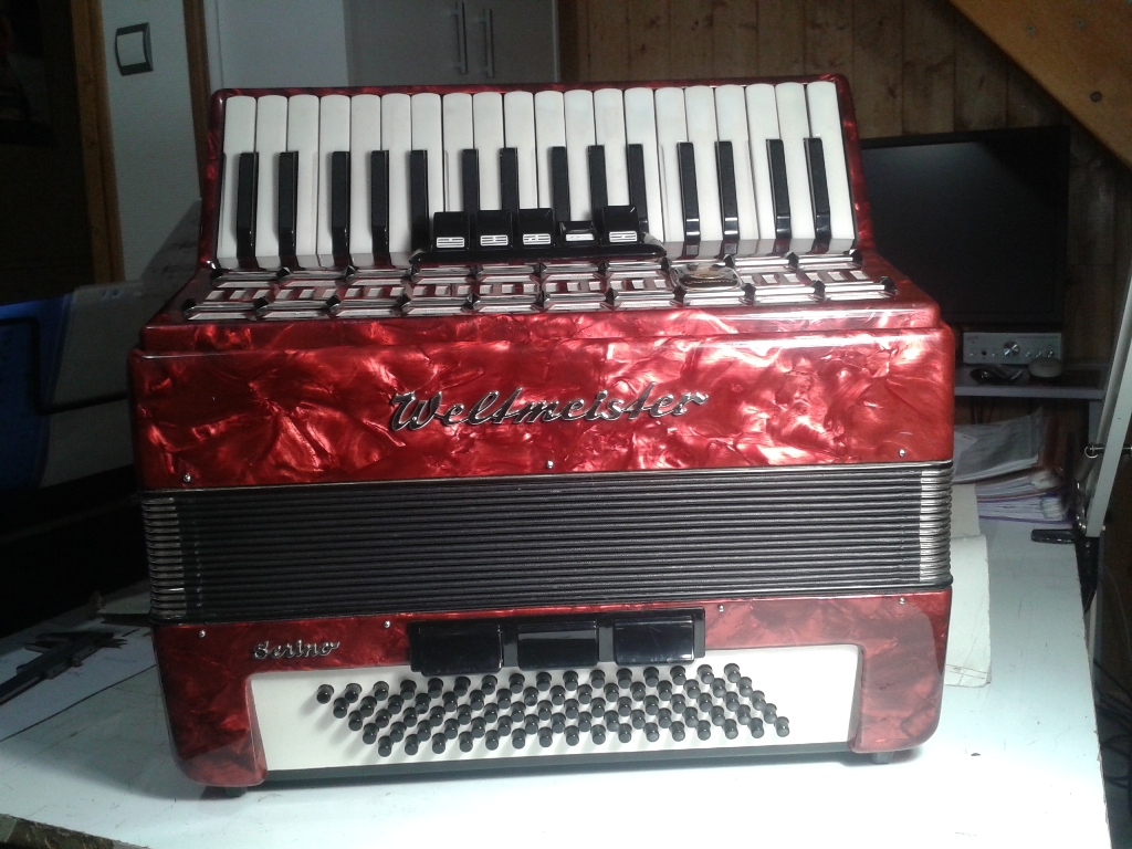 Après un premier proto en 29-32 notes avec un autre accordéon, le nouvel instrument à automatiser est un Weltmeister de fabrication allemande.