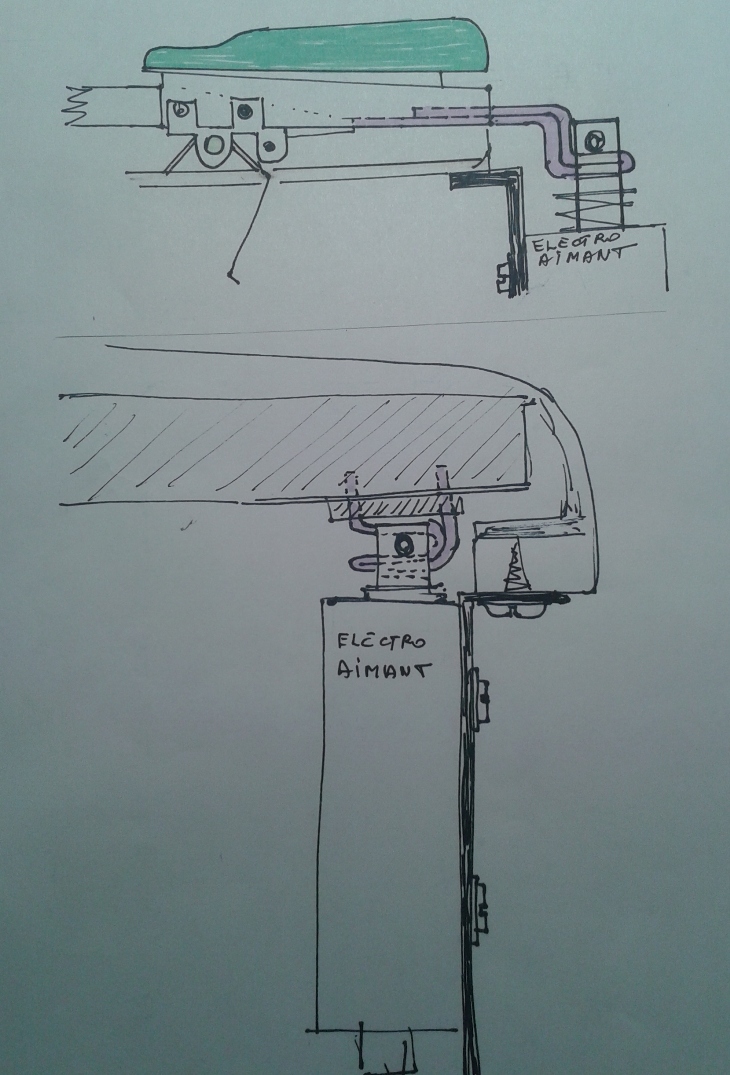 en fil de 1.5 mm. Ces crochets rentrent dans les fentes des électro-aimants.