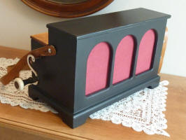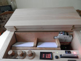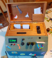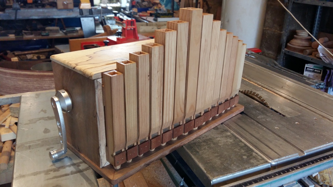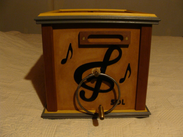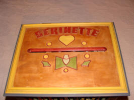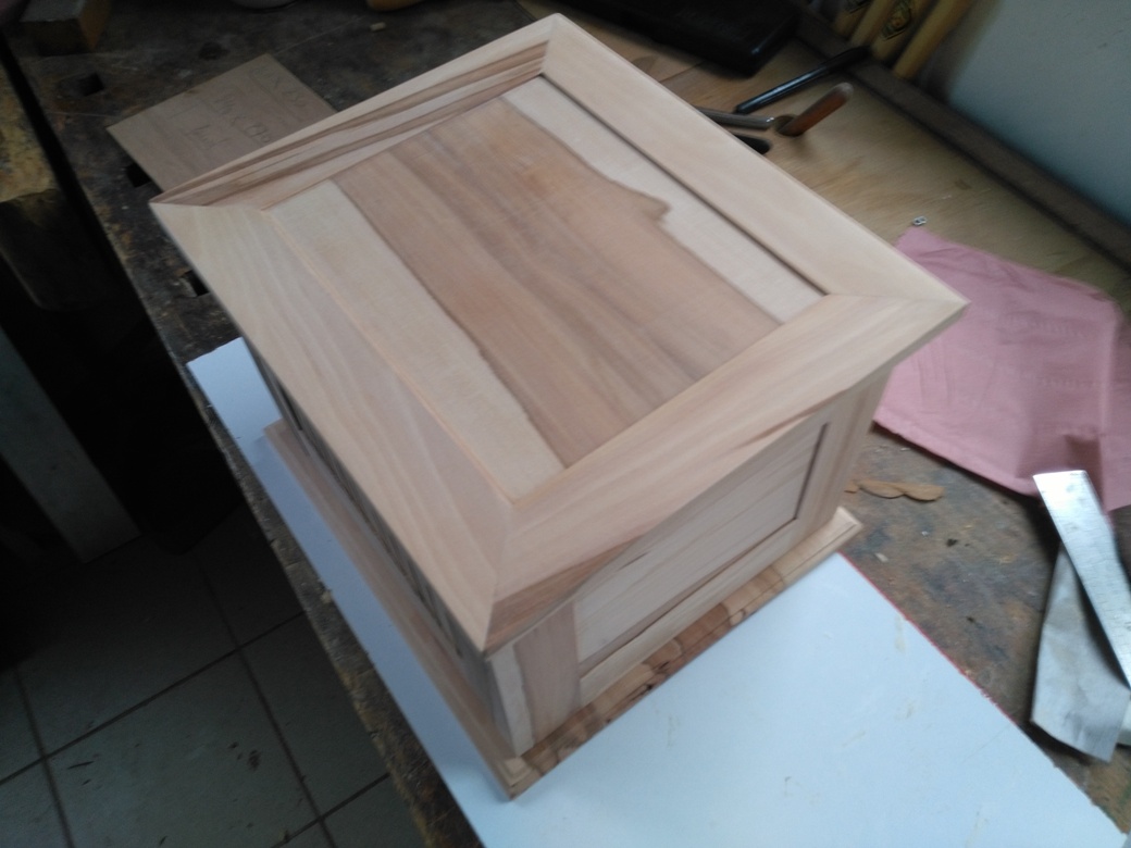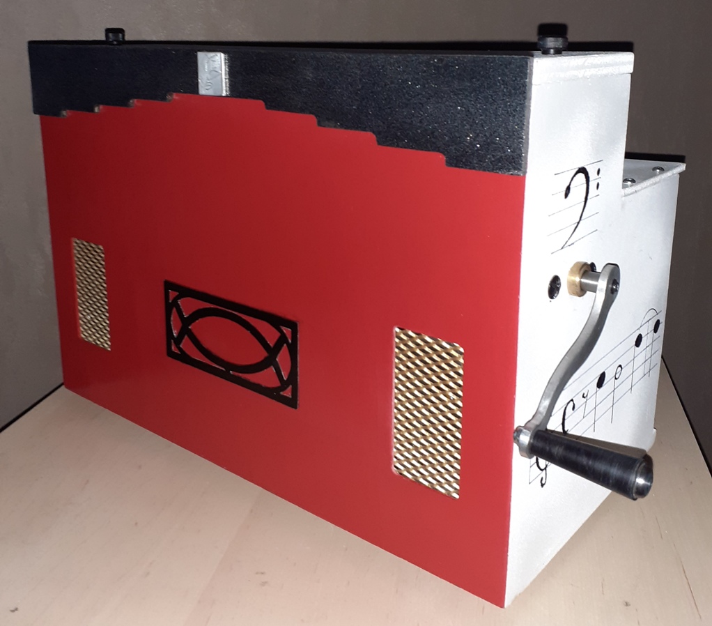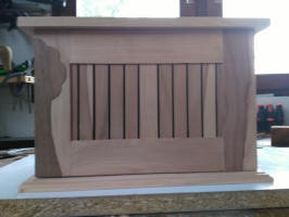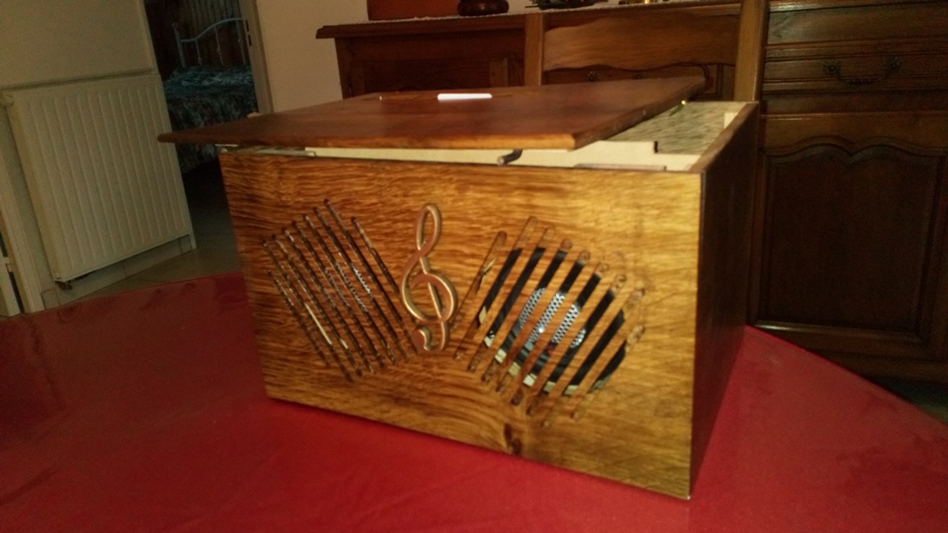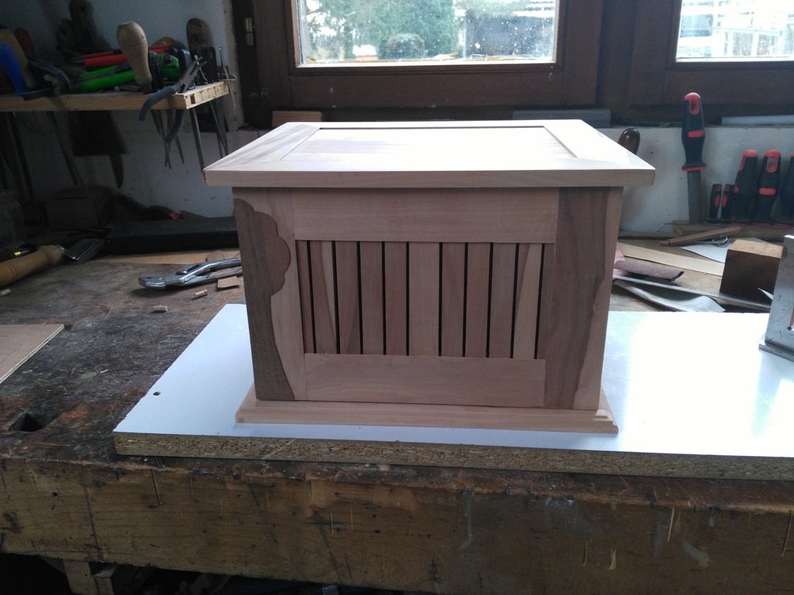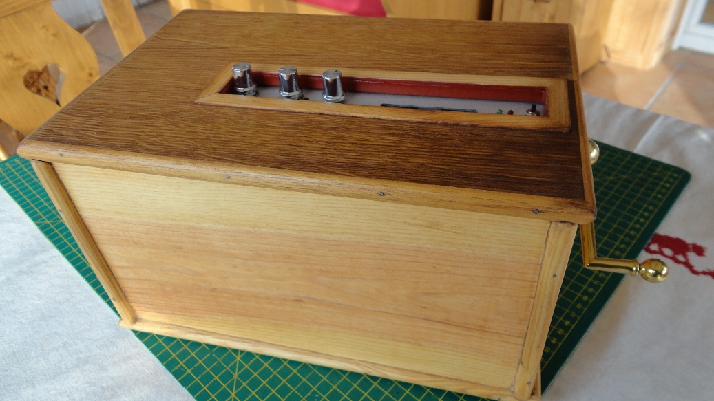 Jean-Louis : Coffret en merisier et découpes de façade au laser.