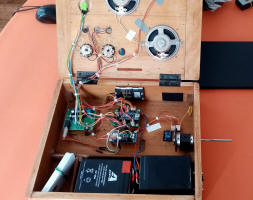 Thomas S : Dans le coffret d'un ancien poste de radio. L'ampli et